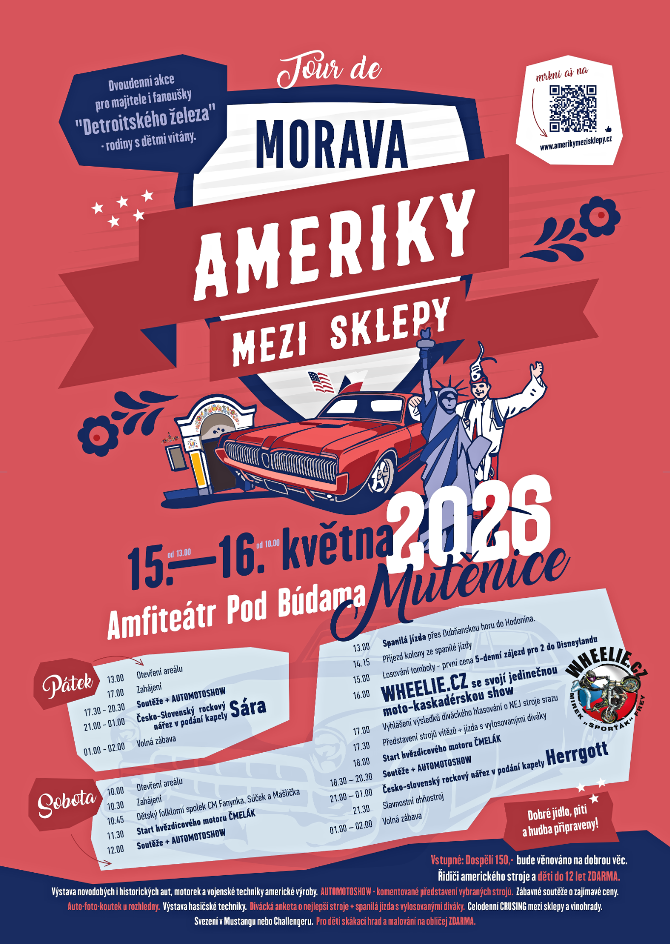 Skvělou kapelu SÁRA již tradičně zařazujeme na páteční večer, zatímco sobotní noc opět rozdivočí HERRGOTT. Těšit se můžete na soutěže a povídání o parádních amerických strojích s lidmi, kteří s nimi přijeli. Kdo tu s námi loni byl po celý víkend, tak už ví o čem jsou Ameriky mezi Mutěnickými sklepy :-)